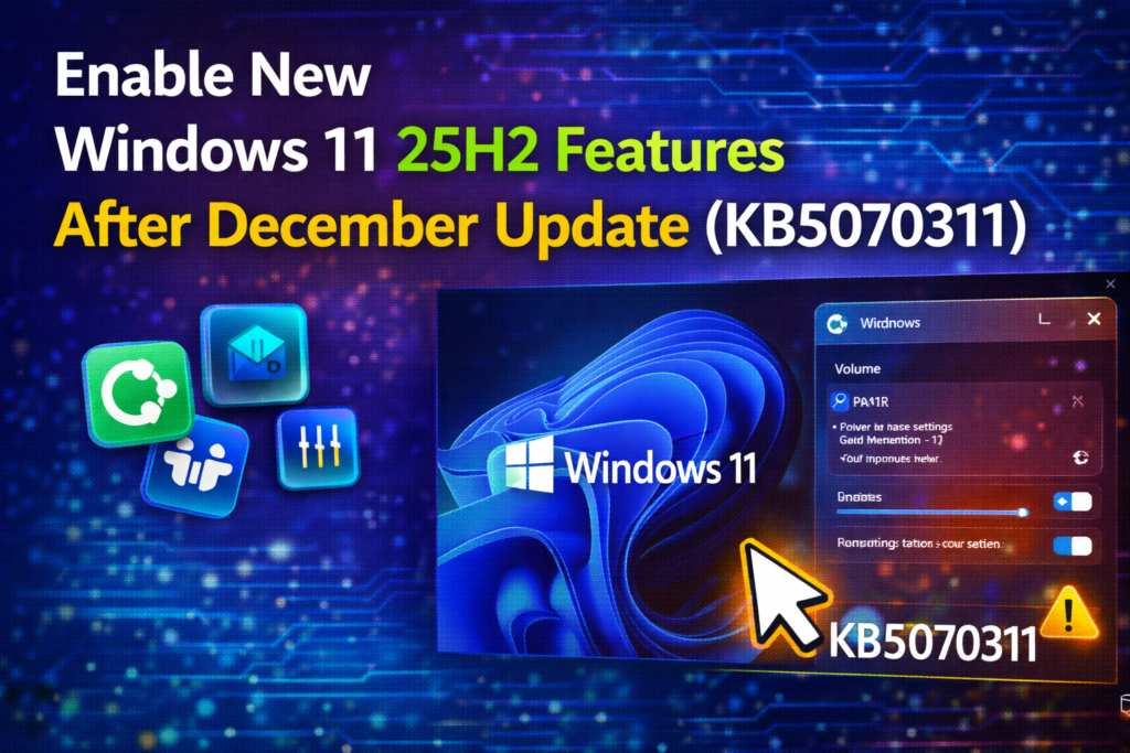 The Windows 11 25H2 December Update (KB5070311) has quietly unlocked a set of powerful new features that many users don’t realize are available by default. While the update installs automatically, several of its best improvements—ranging from productivity enhancements to security upgrades—need to be manually enabled to take full advantage. If you’ve updated your PC recently, you could be missing out on tools designed to make Windows faster, smarter, and more efficient. In this blog, we’ll walk you through how to enable the new Windows 11 25H2 features after the KB5070311 update, so you can maximize your system’s potential right away.