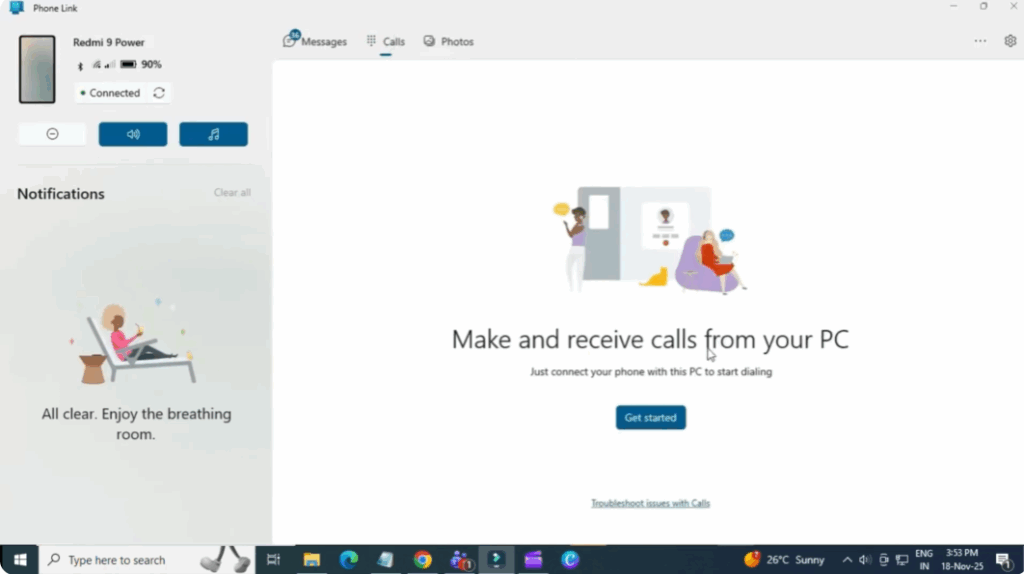 If you’re using an Android device, you get an extra feature. You can actually open and use your mobile apps directly on your PC, including WhatsApp, Instagram, and even games. Everything runs in a separate window just like any other PC software. You can also make and receive phone calls from your PC provided your phone is connected via Bluetooth. This is extremely useful during work, meetings, or online classes.
