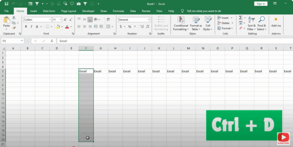 If I want to do the same trick in the below row, then first I will select the cell and press Ctrl + D.