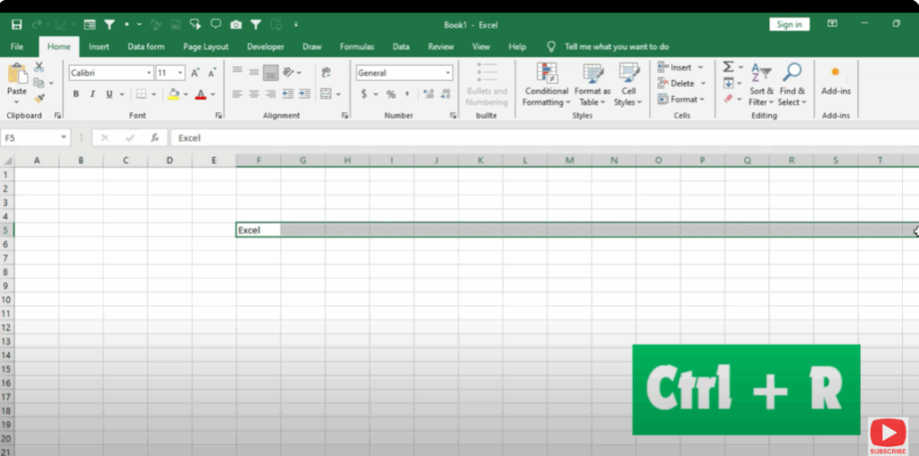 Now, if I want to fill this in the right column also, then I will select the cell and press Ctrl + R.