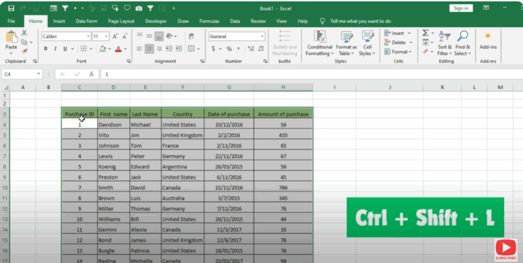 If you want to remove the filter, then again press Ctrl + Shift + L and it will be removed.